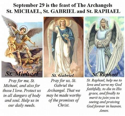 O my God, I love Thee with all my heart, with all my soul, with all my strength and with no other desire than to be inseparably united to Thee. It is through Thy Divine Son that this union is about to be realized within me. In Holy Communion I long to identify myself with Him, that it will no longer be myself, but Him, who lives in me; and when I have received Jesus within myself, then I shall love and be loved by Thee in that same measure, in which I am united to Him. Hasten then, to give me Thy Divine Son, at the hands of Thy priest, that through Jesus, I may unite myself forever to Thee, O God the Father, in the unity of the Holy Spirit. Readings Lectures Reflection Feast of Archangels Michael, Gabriel and Raphael