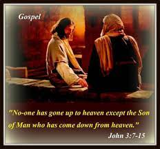 If you do not believe me when I speak about things in this world, how are you going to believe me when I speak to you about heavenly things? No one has gone up to heaven except the one who came down from heaven, the Son of Man who is in heaven; and the Son of Man must be lifted up as Moses lifted up the serpent in the desert, so that everyone who believes may have eternal life in him.’